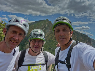 Vuitena tirada: comencem pujant per uns diedres i seguim per un esperonet una mica tombat i amb sabines per poder-nos assegurar.